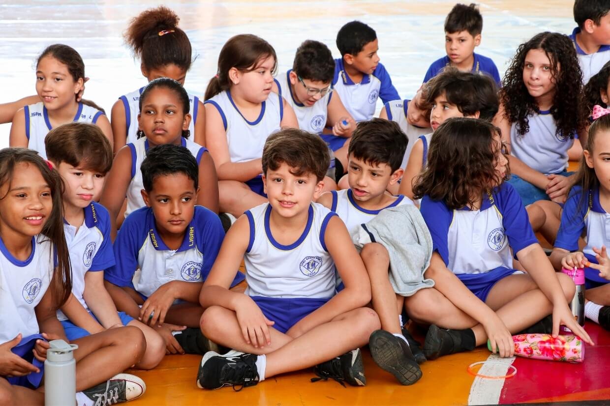 Valorizamos a saúde e o desenvolvimento motor. As aulas de Educação Física são conduzidas por profissionais especializados, promovendo o esporte, a coordenação e o trabalho em equipe.